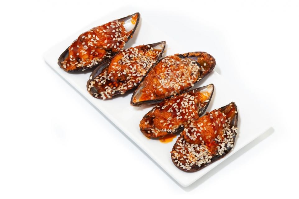 Мидии запеченные острые