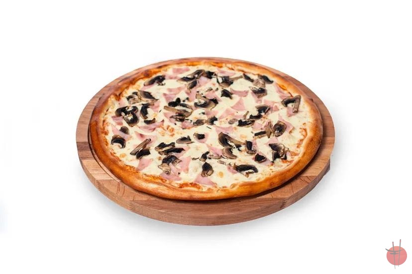 Сливочный соус, Сыр моцарелла, Грибы, Соус томатный, ВетчинаТолько премиум продукты первой свежести и высшего качества