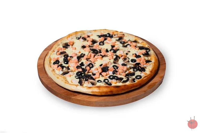 Креветка, Лосось, Сливочный соус, Сыр моцарелла, Сыр пармезан, Грибы, Соус томатный, МаслиныТолько премиум продукты первой свежести и высшего качества