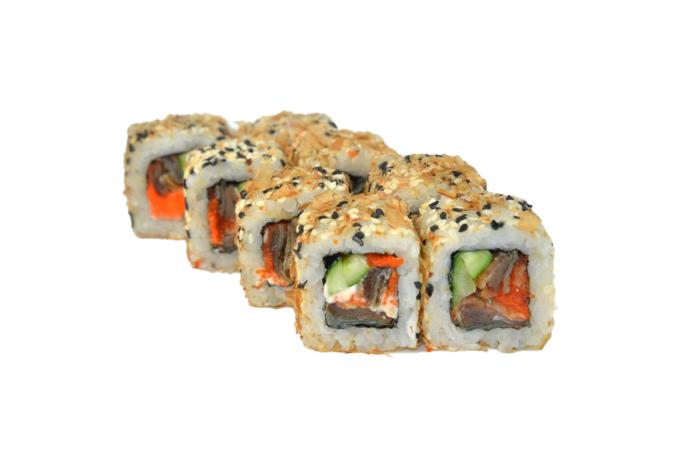 Рис, Нори, Огурец, Масаго, Кунжут, Майонез, Жаренный лососьТолько премиум продукты первой свежести и высшего качества