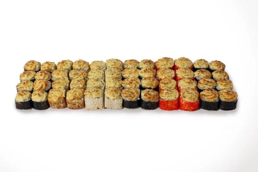 Ролл Мексиканский запеченный - 8, Ролл Запеченный с креветкой - 8, Ролл Вулкан запеченный - 8, Ролл Запеченный с беконом - 8, Ролл Запеченный в стружке тунца - 8, Сыр-лосось (Запеченный) - 8Ингридиенты: