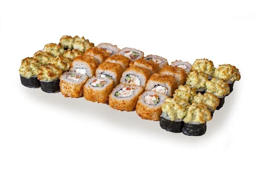 Ролл Лосось с сыром (Горячие) - 8, Курица копченая (Запеченный) - 8, Сыр Лосось (Запеченный) - 8, С курицей (Горячие) - 8Ингридиенты:
