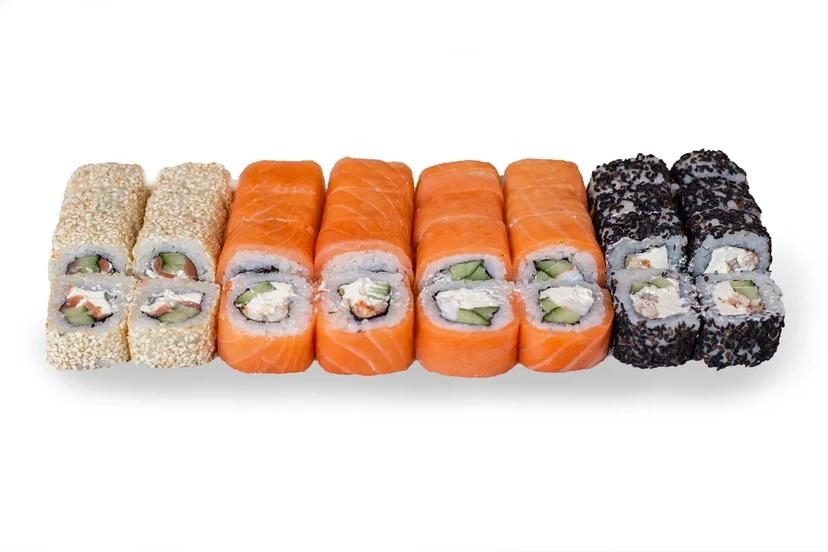 Ролл Филадельфия - 8, Ролл Филадельфия с угрем - 8, Ролл Филадельфия спешл - 8, Ролл Филадельфия с креветкой - 8Ингридиенты: