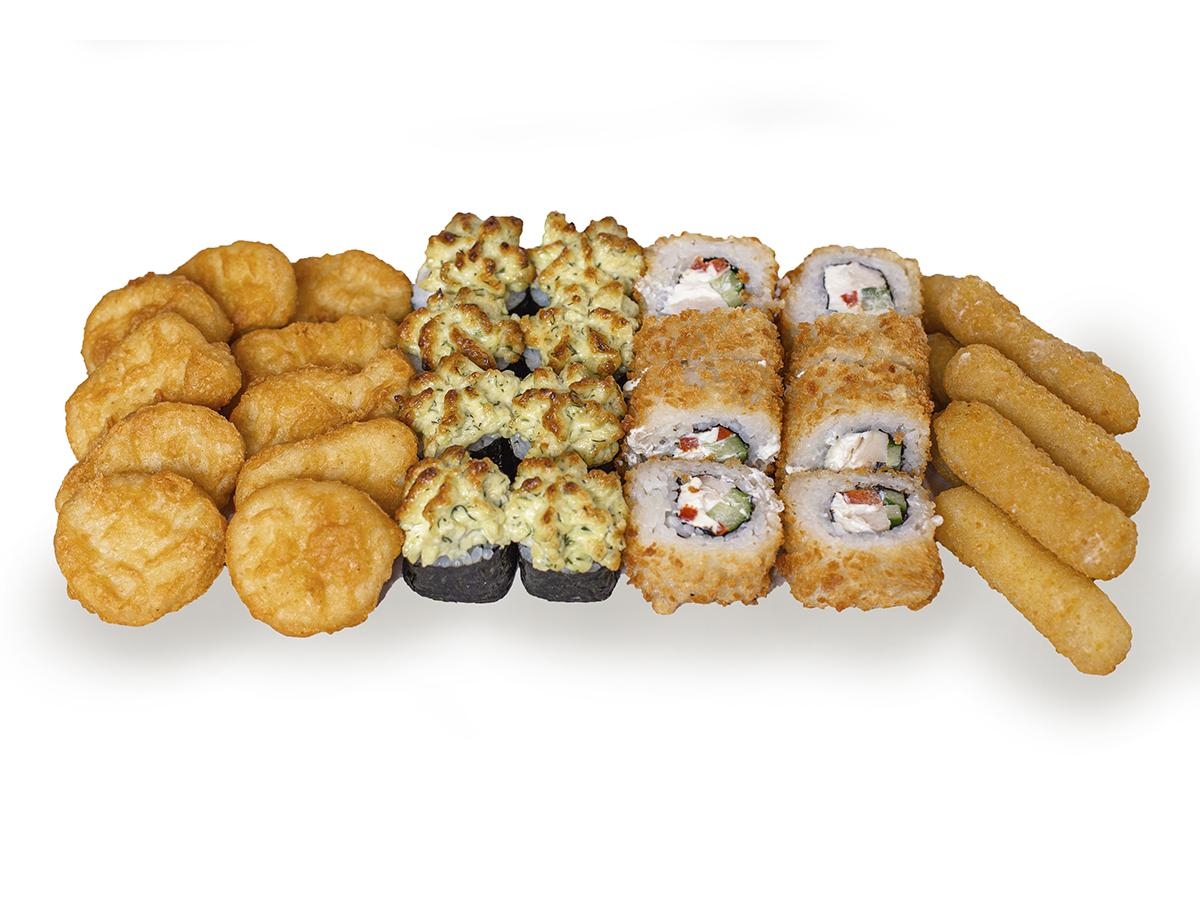 Курица, Панировка, Сыр, Рис, Нори, Сыр Буко, Копченая курица, Лосось, Сыр моцареллаТолько премиум продукты первой свежести и высшего качества