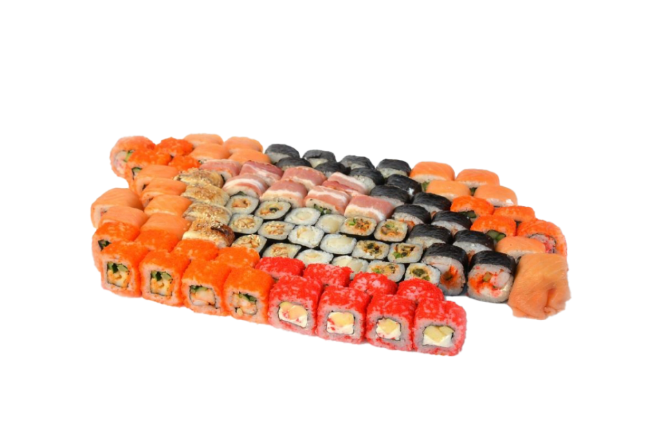 Ролл Нежный - 8, Окианава - 8, Ролл Лосось - 6, Самурай - 8, По-русски - 8, Ролл Копченая курица - 6, Ролл Калифорния - 8, Ролл Гейша - 4, Ролл Атлантический - 8, Ролл Мексиканский - 8, Шиитаки с сыром - 8, Ролл Эсколар - 6Ингридиенты: