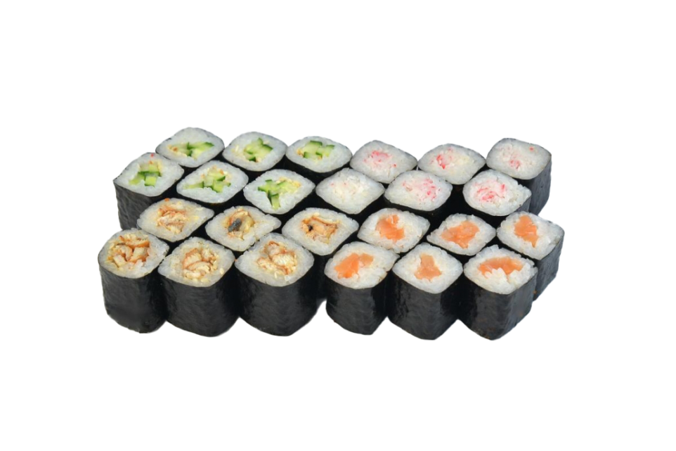 Ролл Лосось - 6, Ролл Огурец - 6, Ролл Краб - 6, Угорь - 6Ингридиенты: