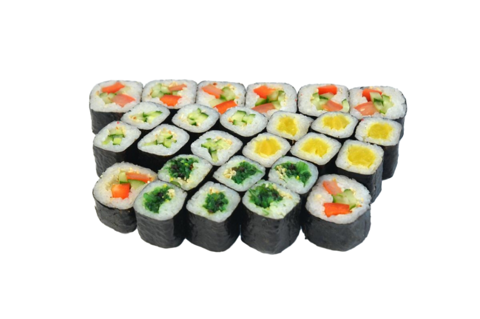 Рис, Нори, Огурец, Кунжут, Паприка, Помидор, Чука салат, Маринованная редькаТолько премиум продукты первой свежести и высшего качества